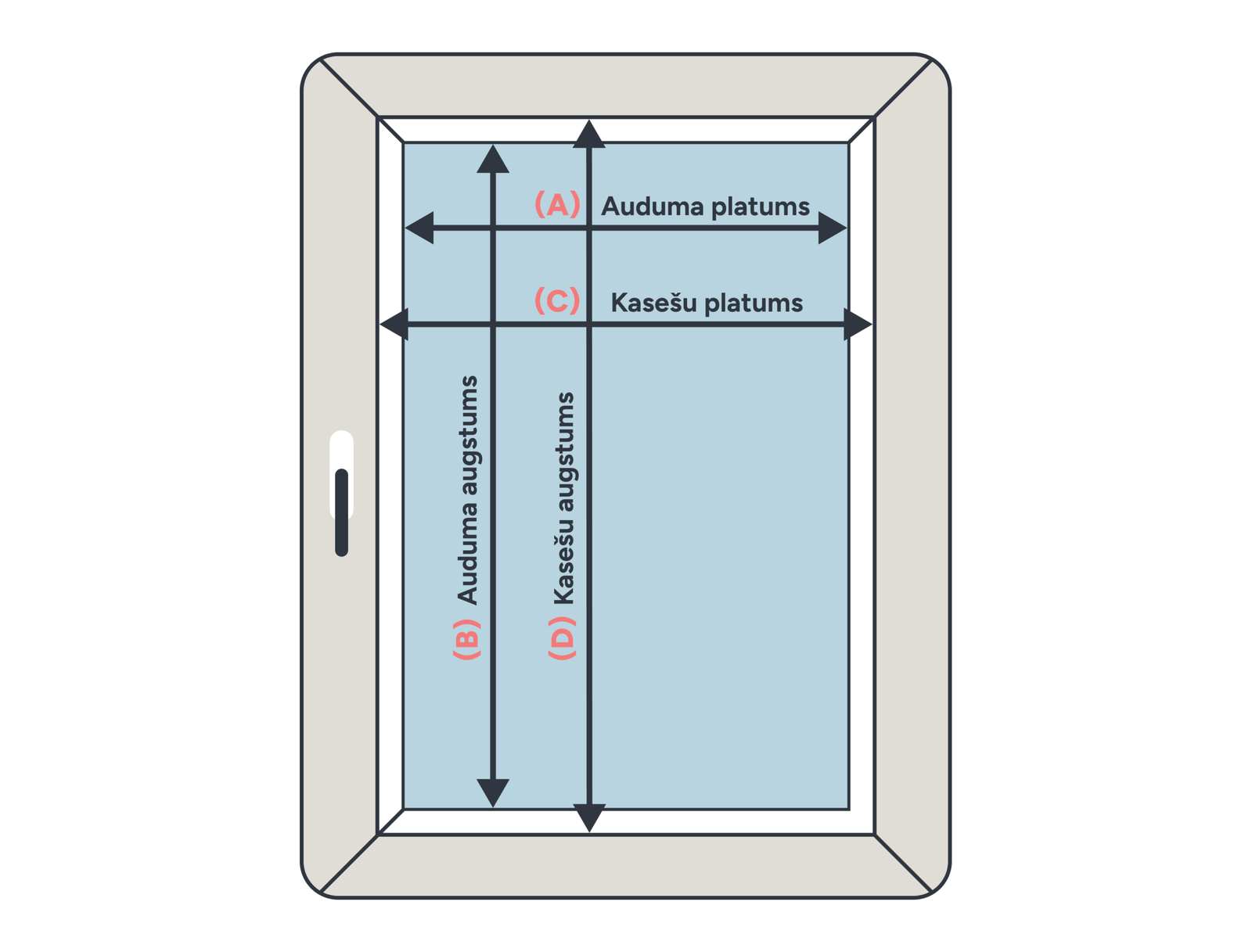 Pasūtot žalūzijas, lūdzam izmērīt šo dziļumu ar mērlenti.