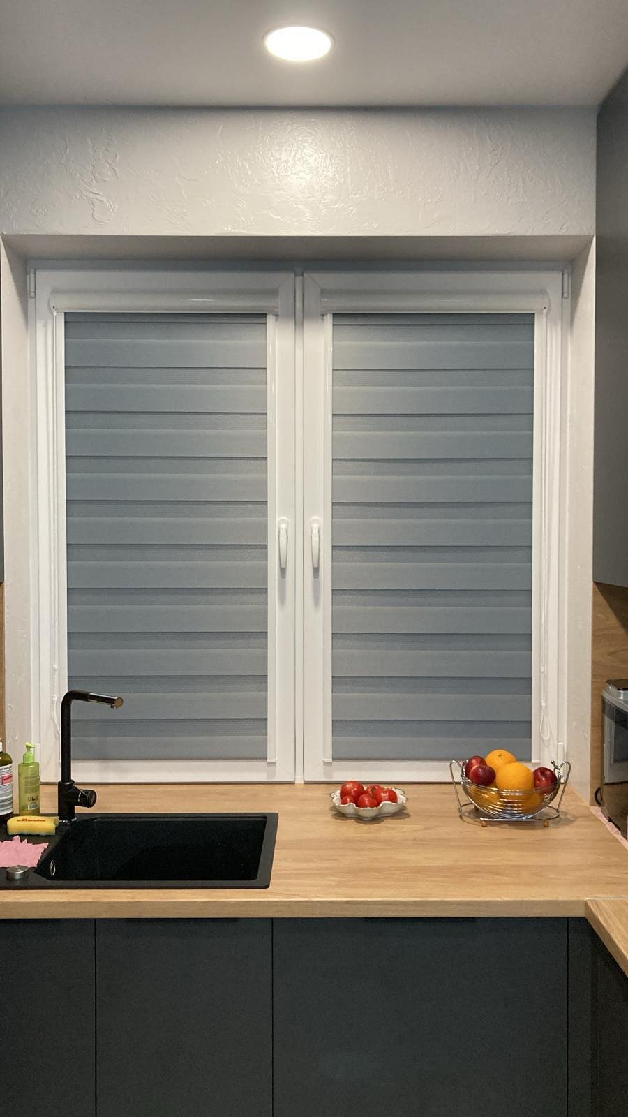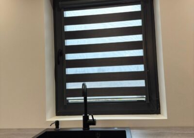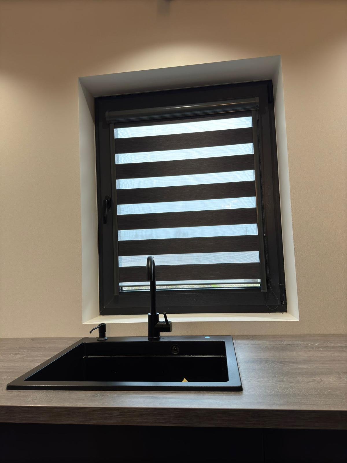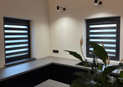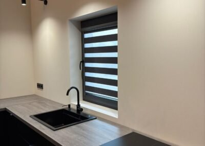 Kompaktais kasetes dizains netraucē atvērt logu un nesakrāj taukus vai putekļus. Diena-nakts funkcija ļauj saglabāt dabisku gaismu gatavojot, bet nodrošināt privātumu vakaros.